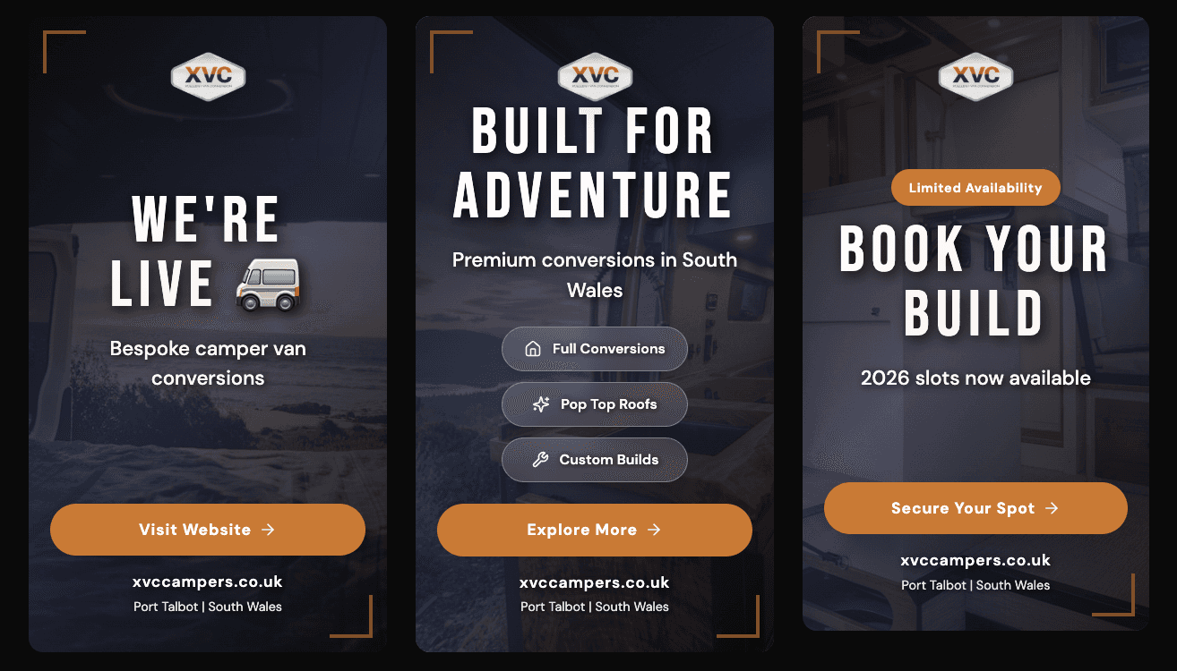 The XVC Campers website was transformed into a modern, high-performing platform that clearly showcases their services, improves search visibility, and is built to generate consistent enquiries while supporting ongoing business growth.